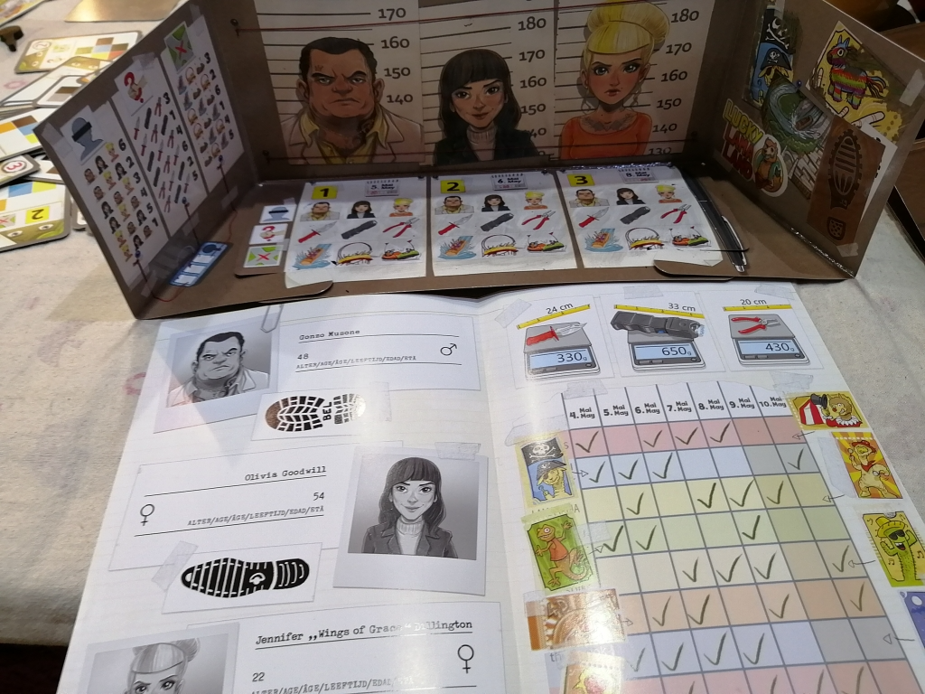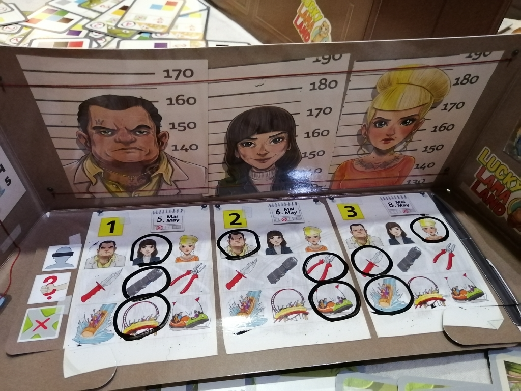 遊んでみまして、推理ってよりは論理系で正解するのに時間は掛かったりしたけど、ヒントカードを少しずつ手に入れて、事件の犯人、使用道具、犯行現場の正解を導き出すと組み合わせによる3桁の番号が答えを解く鍵となります。