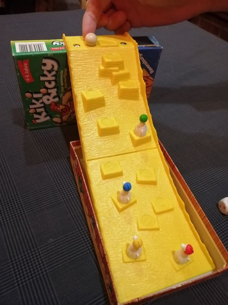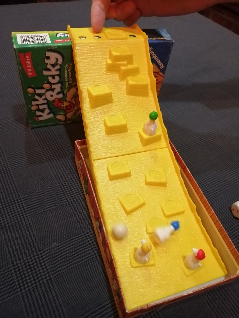 ニワトリ達が坂道を駆け上がり頂上を目指して、ダイスを振り出目の数だけ進むという分かりやすいゲーム。