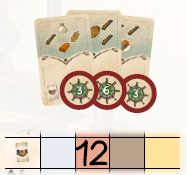 スコアリングチップ4つ 4つのチップをプレイヤーボードに置き、全員に見えるようにします。 |