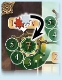 ゲームを数回プレイした後は、ゲーム開始時に、追加のスコアリングホイールでホイールの1つをカバーするかどうかを決定できます。これにより、利用可能なポイントを増減できます。そうしない場合は、追加のスコアリングホイールをボックスに戻します。 |