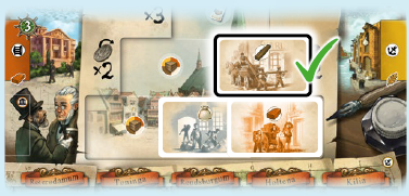 カードを選択するときは、ゲーム全体に適用される次のルールに従ってください: アクションカードは、評議会ボードの、そのカードの真上の位置に示されている数の鍵を持っていれば、無料で受け取ることができます。