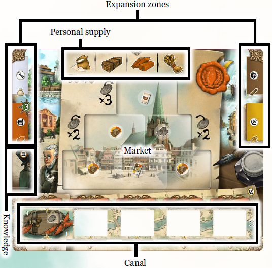 プレイヤーボード - 拡張ゾーン - 個人サプライ - 市場 - 知識 - 運河 |