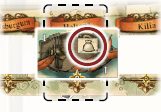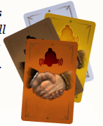 5) 36枚の契約カードから、色付きの裏面とベルのシンボルが付いた4枚の開始契約を取り分け、脇に置きます。 |