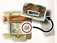例: エリックは、錨シンボルの付いた黄色のカードを取り、倉庫ゾーンの下にスライドさせます。 |