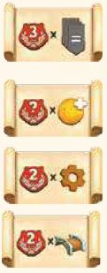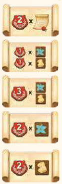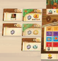彫刻家: 雇うと、彫刻トークンをプレイヤーボードに配置します。 行商人: 彼らからは、さまざまなリソースやボーナスを受け取ります。 |