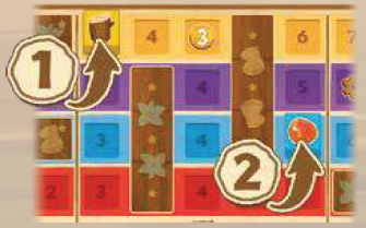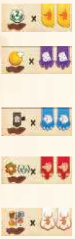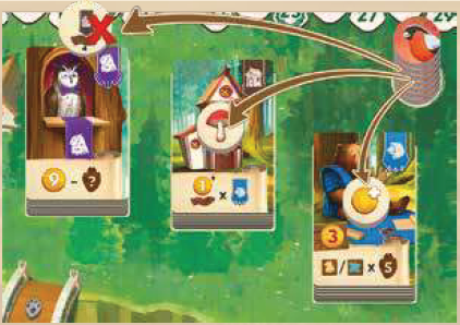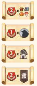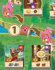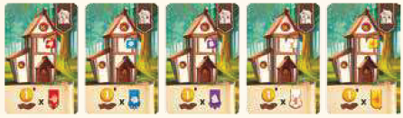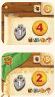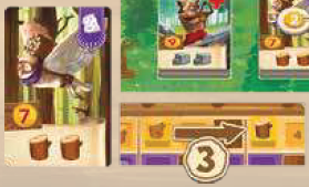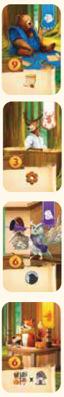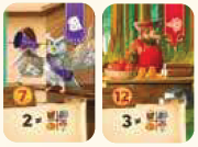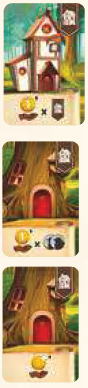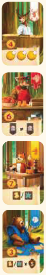 抽出家:雇うと樹液を集めます。 農家:雇うと食料を集めます。 花屋:雇うと、花トークンをプレイヤーボードに配置します。 |