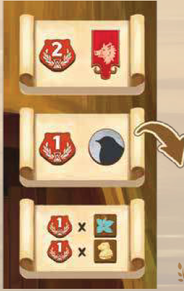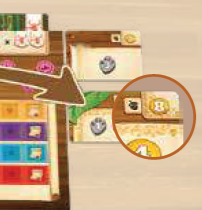 - 建造物シンボル - 効果: ただちに、あなたが持っている狐ギルドのカード1枚につき1コインを獲得します。(訳注: 収入フェーズでも、同じ効果を発動します。) |