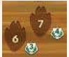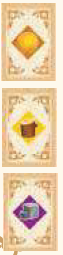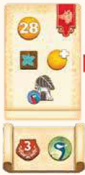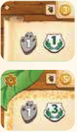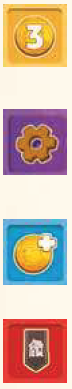 • 花/彫刻:共通サプライから取り出し、1つのシンボル(1つまたは2つの星)が付いた花または彫刻トークンをプレイヤーボードの対応するスペースに配置します。 |