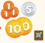 • コイン:カードに示されているコインを共通サプライから取り出します。 |