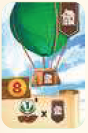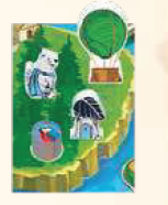 開始カードに示された鳥がいる地域にワーカーと家を配置します。さらに、ファーストプレイヤーなので気球もその地域に配置します。 |