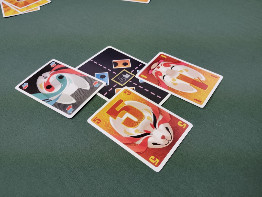 メイフォローで好きなカードをプレイすることができ、全員がカードをプレイしたら、赤と青の数字をそれぞれ合計して数字の大きい色のチームのコマが差分だけゴールに向かって移動します。