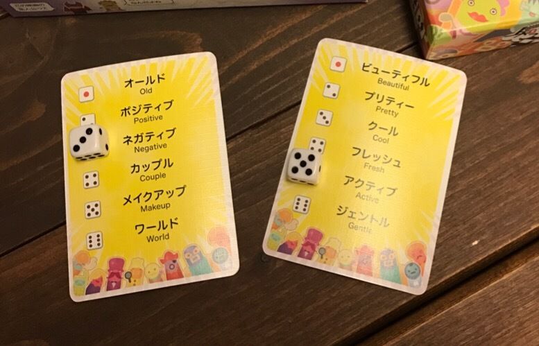 ↑このように、出たダイスの目のワードを組み合わせてタイトルを作り、見たこともないはずの映画の内容を知ったかぶって語る!というゲームです。