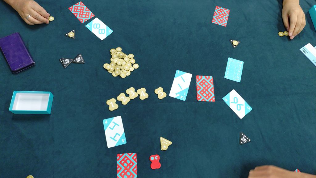 最後に勝負をする(3枚まで)か、ゲームから降りるか選択します。降りた人は、誰が勝つか(3枚まで)予想します。勝負で勝った人は勝負した分総取り+ラウンド数の枚数、降りた人は当たれば銀行から貰えます。(外したら銀行に没収。)