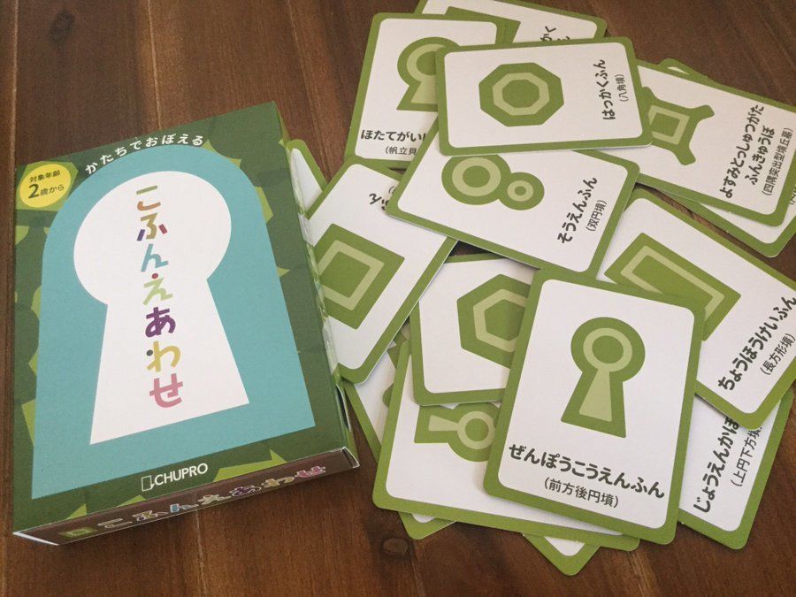 各古墳の簡単な説明が書かれたこたえあわせ用のカード一覧もあって、よく知られた前方後円墳以外にもいろいろな形の古墳があることを知ることができ、古墳への興味のきっかけにもなる楽しいカードゲーム。