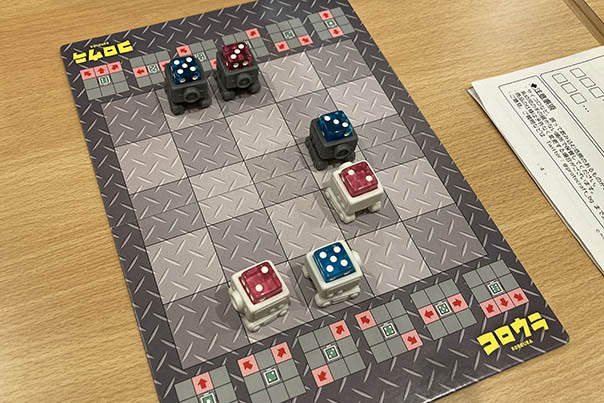 コロウラという、ダイスを装着できるロボット?を3体ずつ持ち、その内の1体は相手の色のダイスを入れてボスコロウラとする。