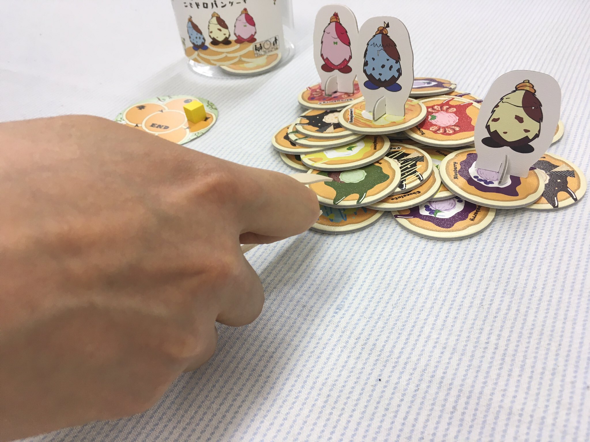 フォークとナイフを使って将棋崩しの要領でパンケーキを毎手番で一枚ずつ自分の皿へと運ぶゲームです。