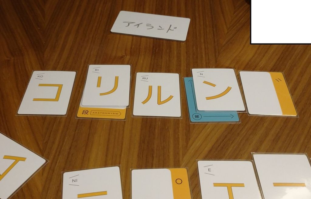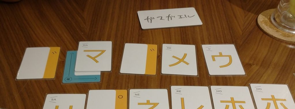 濁点や「行」、「列」といった補助的なカードも使用しつつ、うまく相手に伝わるように文字を入れ替えていきましょう。:-)