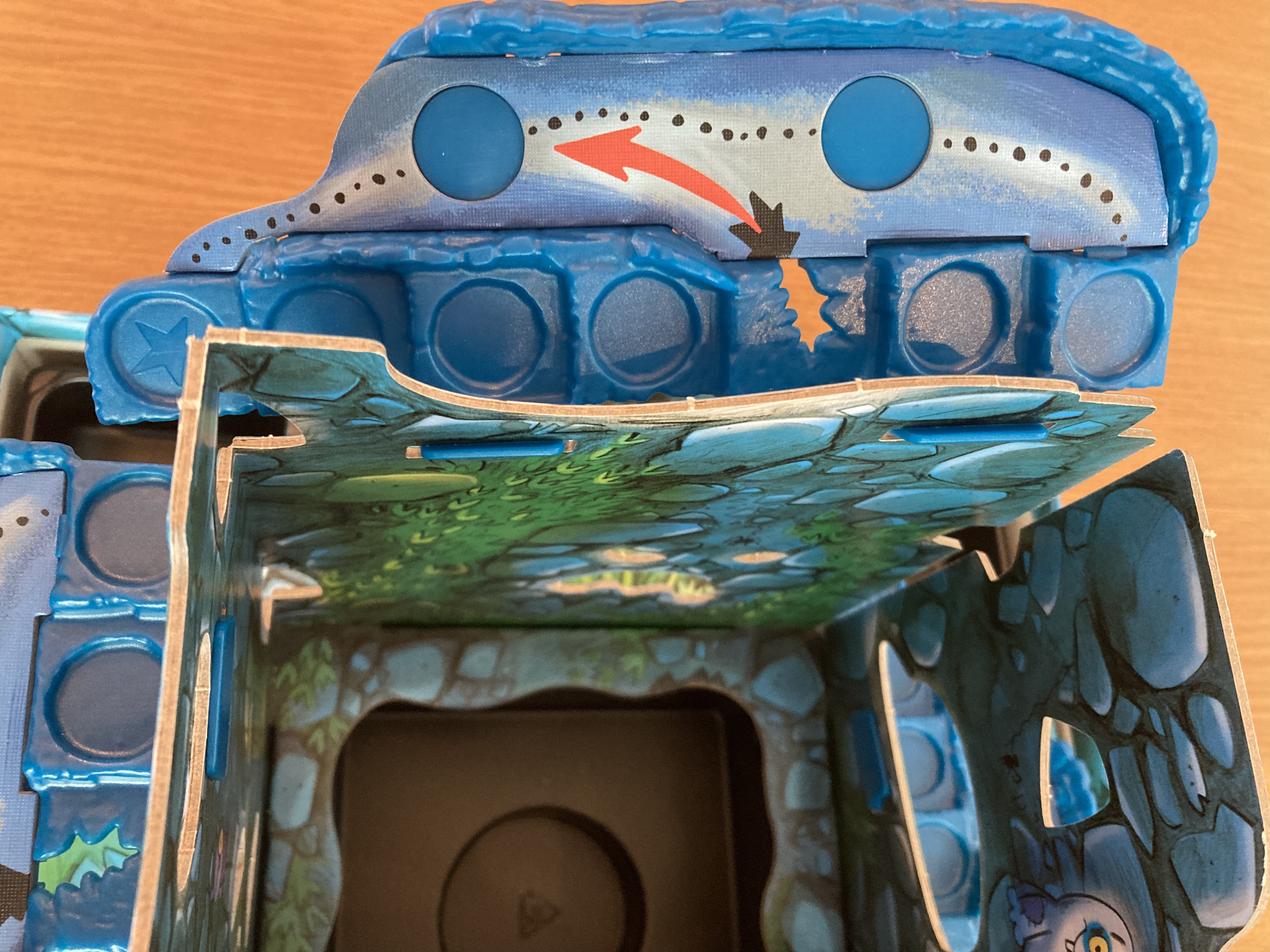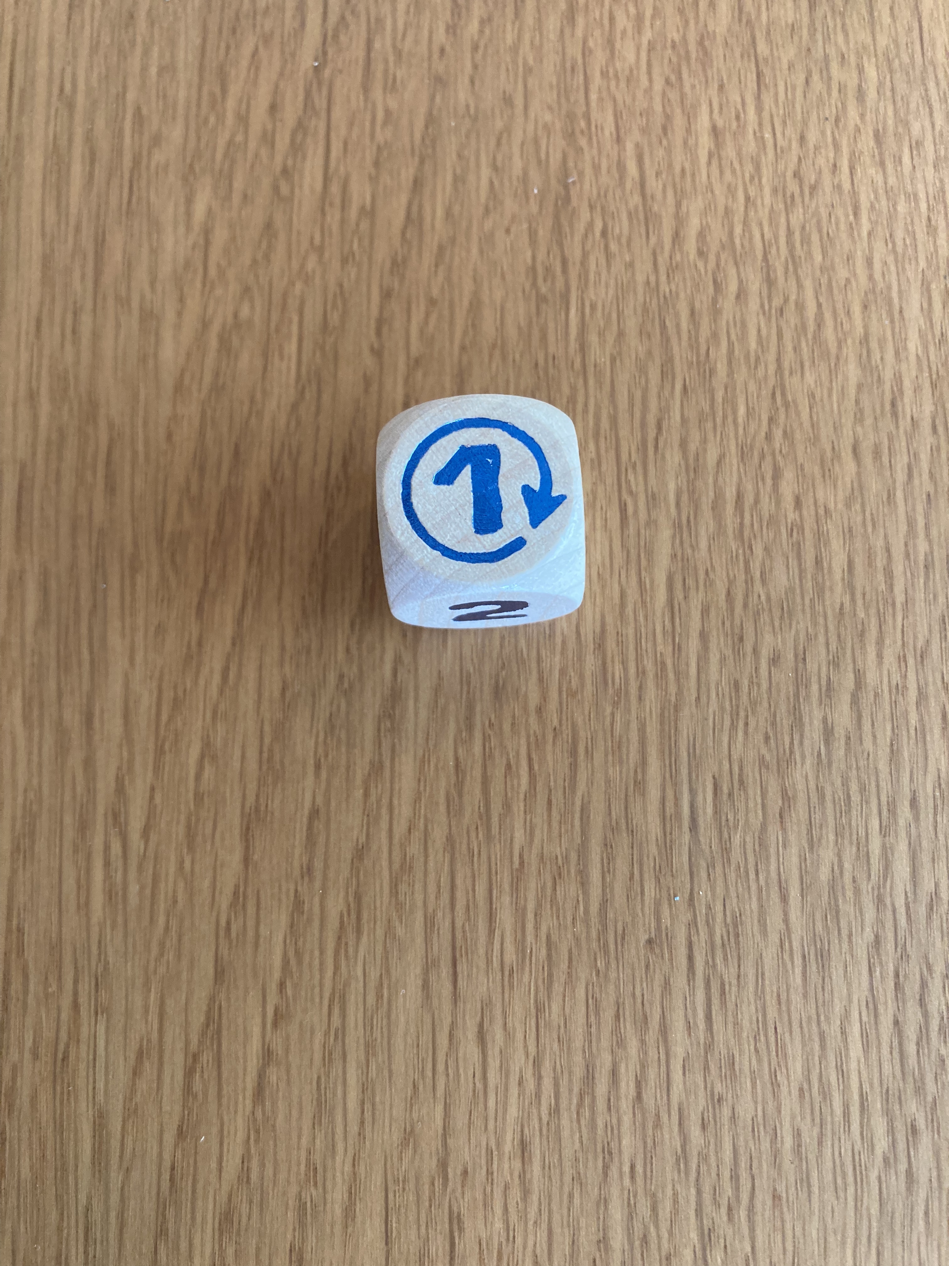 矢印ありの出目が1と2があり、出目の歩数を進めた後に塔を1つ分時計回りに回す。(回転する際に引っ掛かる区切りがありますので、それを目安に1回分と数えます)