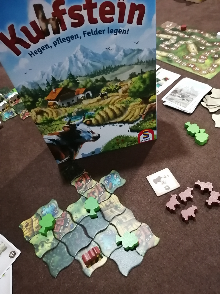 タイルは5種類あり、得点化するにはカードに描かれている通りにタイルを配置して、カードを公開してウシを配置することで得点を獲得します。