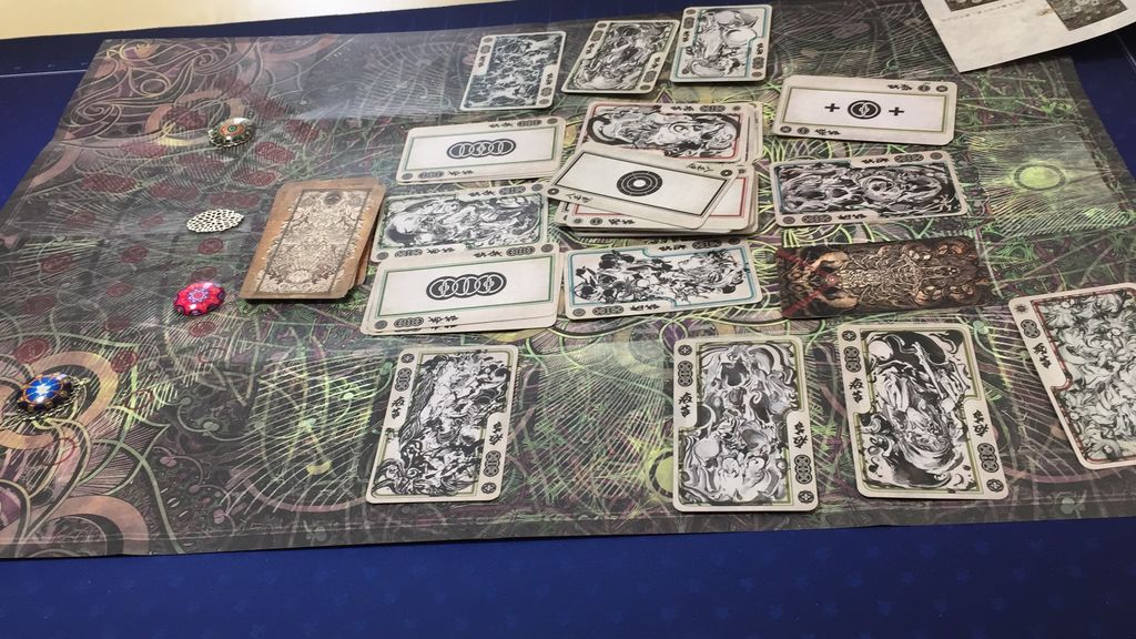 相手プレイヤーに、「おまえー、それを出すんかー」とか、「それ、引いちゃったかー」とか終始ワイワイしてました。テーマ的に、仏教の四苦八苦なんで、わいわいする? っていう感じではあるんですが(笑)
