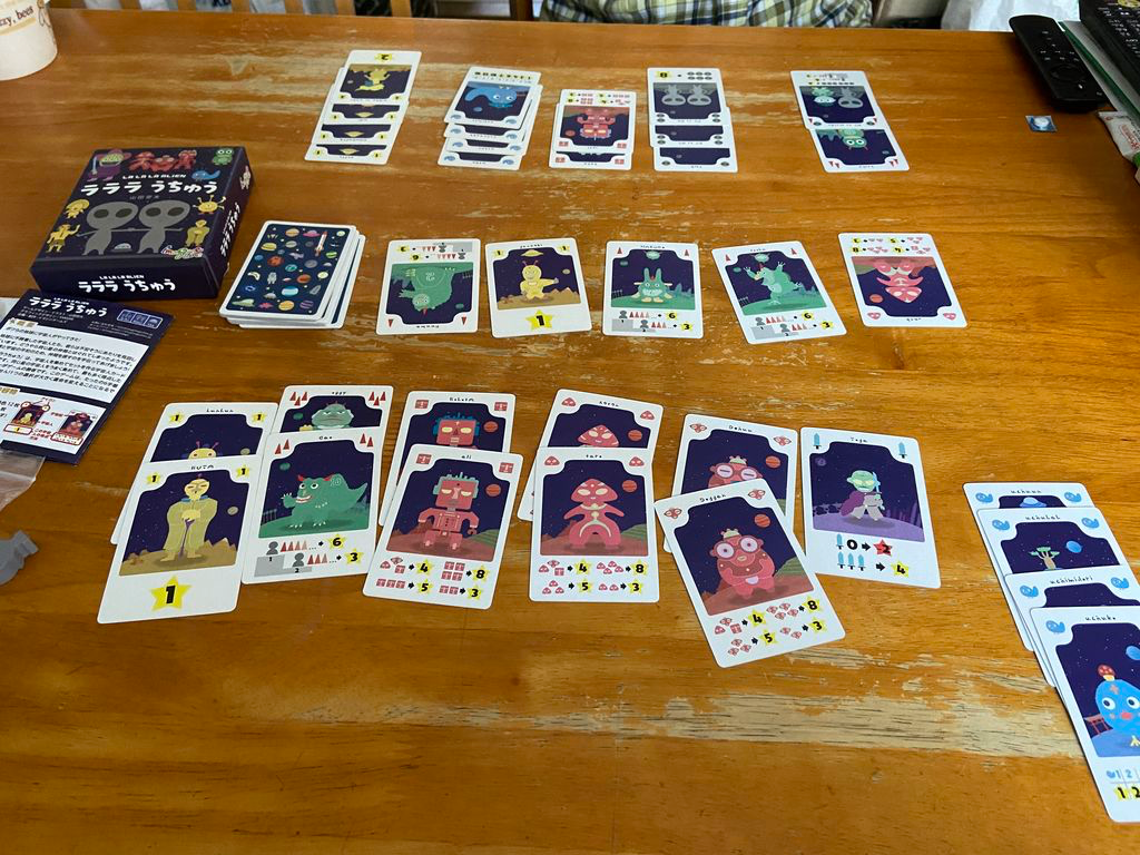 セットコレクション系のゲームだけど、ゲーム全体で6手番しかないので、シンプルながらも悩ましい。しかも手番では色の違う宇宙人を必ず交換しなければならず、たとえ欲しくない宇宙人しか場に出ていなくてもパスは出来ない。狙っていた場札が、総入れ替えによってガラリと変わってしまうなど、ドラマも生まれやすい(笑)