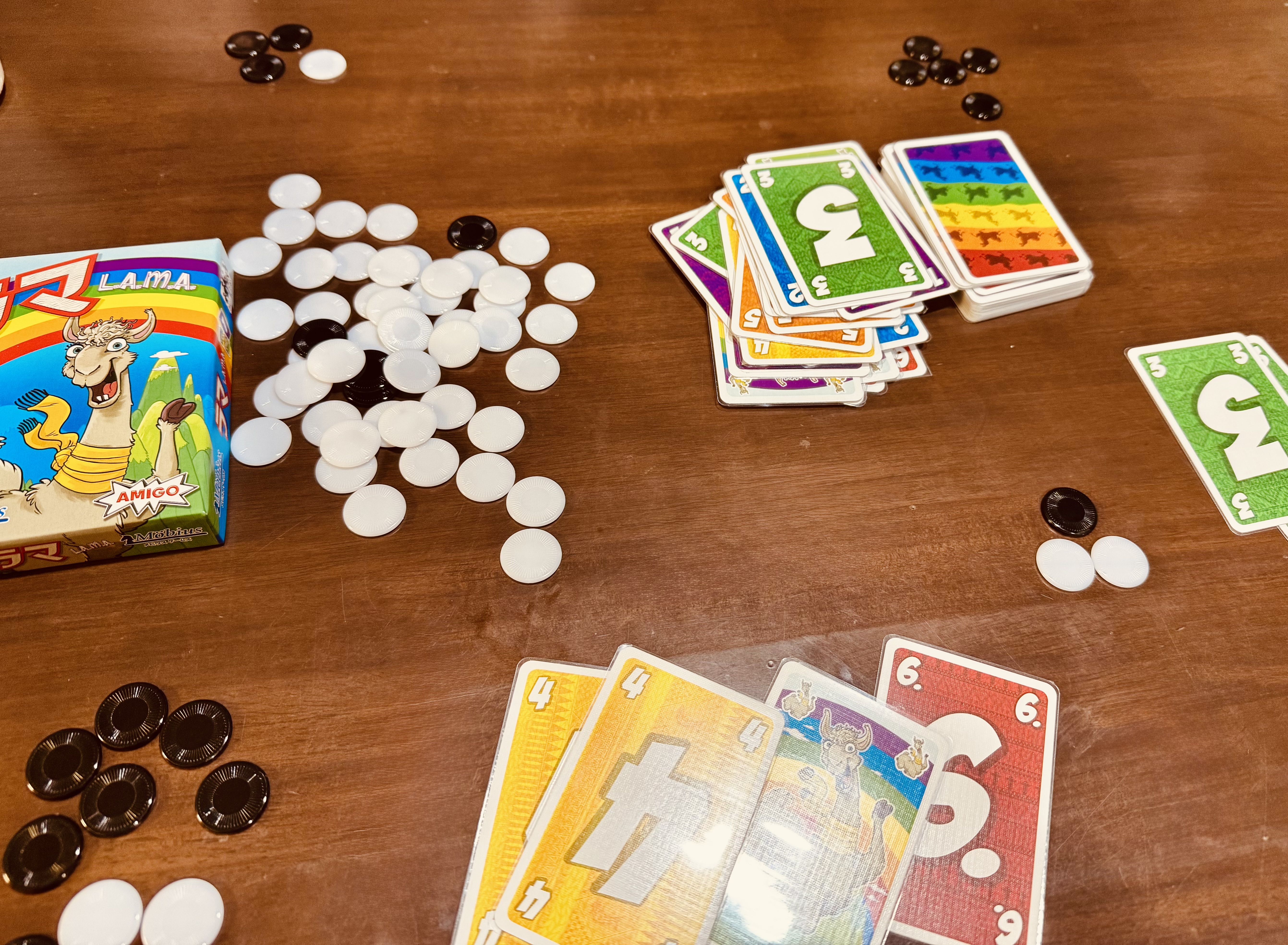 自然と「1!」「2!」「2!」「3!!」「4!!」「4!」「5!」「6!」「6!」「ラマァァ!」みたいに掛け声とともにカードを出して言ってしまうというか、ラマくるとテンション上がりますねw(うちだけ??)