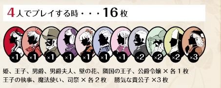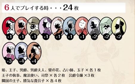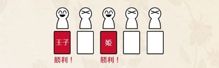 - ゲームが終了したときに最後に持っていたカードが王子カード、もしくは姫カードだったプレイヤーの勝利(2人とも勝利となります)