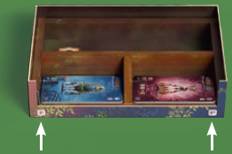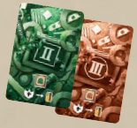 a. シーズンIデッキを最初に置き、インターシーズンIIカードをその上に置きます。 b. この上に、シーズンIIデッキを置き、インターシーズンIIIカードをその上に置きます。 c. シーズンIIIデッキをこのデッキの一番上に置きます。 d. このデッキ全体を裏返し、カード分配器の2つのスペースのうちの1つに表向きに置きます。したがって、シーズンIカードがこのデッキの一番上になります。 |