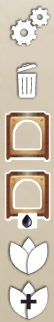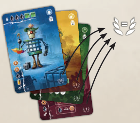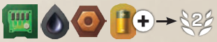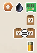 - ドロイドの修理コスト、またはそれに関連する効果。 - 解体時に獲得するもの、または解体されたドロイドカードに関連する効果。 - 選択したパーツの列に配置できる小屋拡張。 - パーツアイコンで示されるパーツの列に配置する必要がある小屋拡張。 - 葉 - 葉のマジョリティ |
