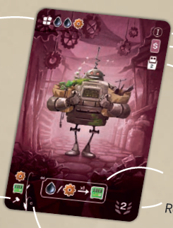 優先エコメカニックは、エコメカニックの数だけドロイドカードを引いてテーブルの中央に表向きに配置します。 今、エコメカニックは、ドロイドカードの1枚を集めたいという希望を表明できます。 優先エコメカニックは、他のエコメカニックのアドバイスを考慮して(または無視して!)、それぞれに1枚ずつ渡し、1枚は自分が保持するカードを選択しなければなりません。 |