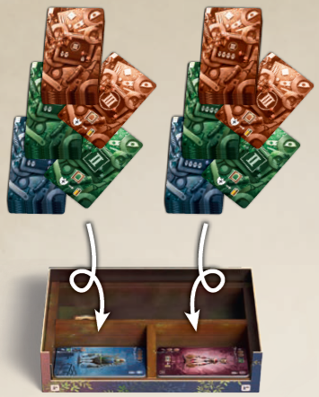 👤👤👤: ドロイドカードを分類し、👤👤および👤👤👤カードのみを残します。他のカードは脇に置き、エコメカニックが4人のゲームでのみ使用されます。
