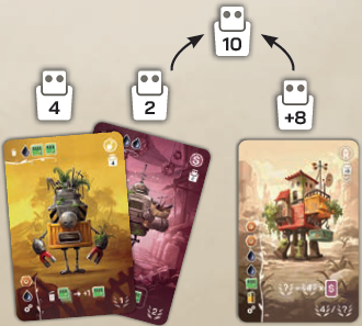 👤👤: ドロイドカードを分類し、👤👤カードのみを残します。他のカードは脇に置き、エコメカニックが3人または4人のゲームでのみ使用されます。