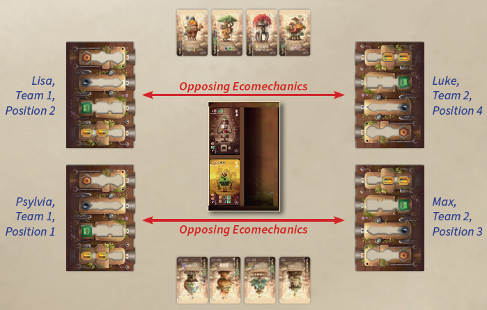 ただし、場合によっては、エコメカニックの順序が重要になる場合があります。ターン順を決めたい場合は、優先エコメカニックから時計回りにゲームフェーズを行います。