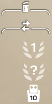 - 解体アクション中に発動する効果。 - パーツ交換のカード効果。 - リサイクルポイント(RP) - ドロイドのカードの効果によって付与されるリサイクルポイント(RP)。 - 興味値(ソロモードのみ) |