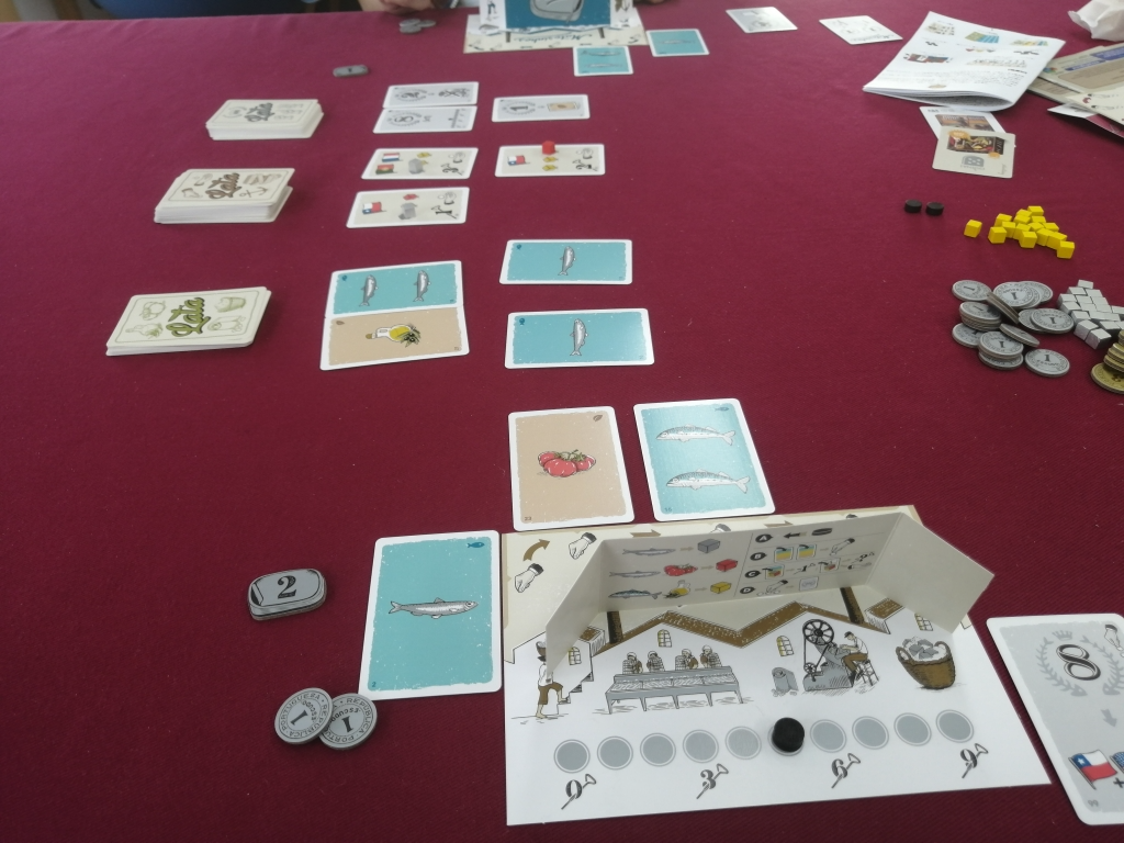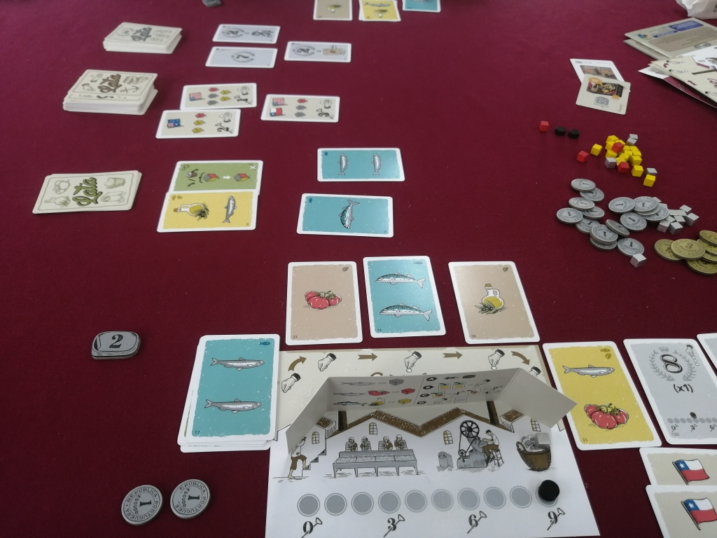 缶詰めになる材料や缶詰めの出荷をアクションポイントをどれだけ減らして先に行動するかを決める競りゲーム。