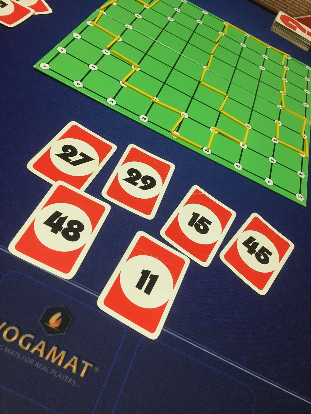 以後、手番では棒を1本置くのみで、ゲームが進みます。該当する数字の場所に来たら、その手札を捨てて、すべて捨てたらそのプレイヤーが勝ちとなります。