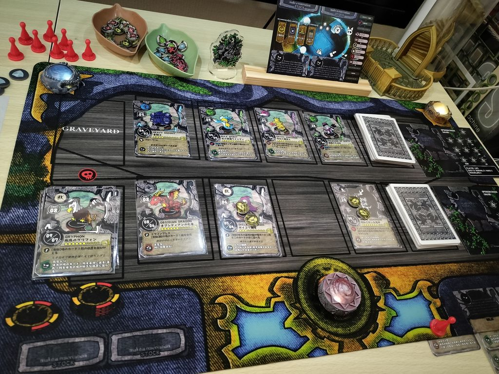 見た目は軽量級ですが、 ゲーム内容はかなり充実しており、中量級レベルのボドゲという印象を受けました。カードバトルに要素を限界まで詰め込んだ、かなりやりごたえのあるTCGです。
