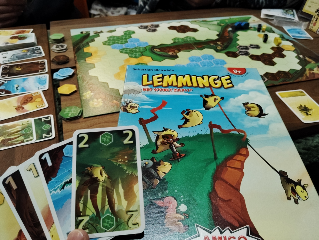 カードをプレイしてコマを移動させるか、手札のカードを好きな枚数捨てて山札から手札が6枚になるように補充するかのどちらかを手番になったら実施していき、先に2匹のレミングがゴールしたプレイヤーの勝ち。