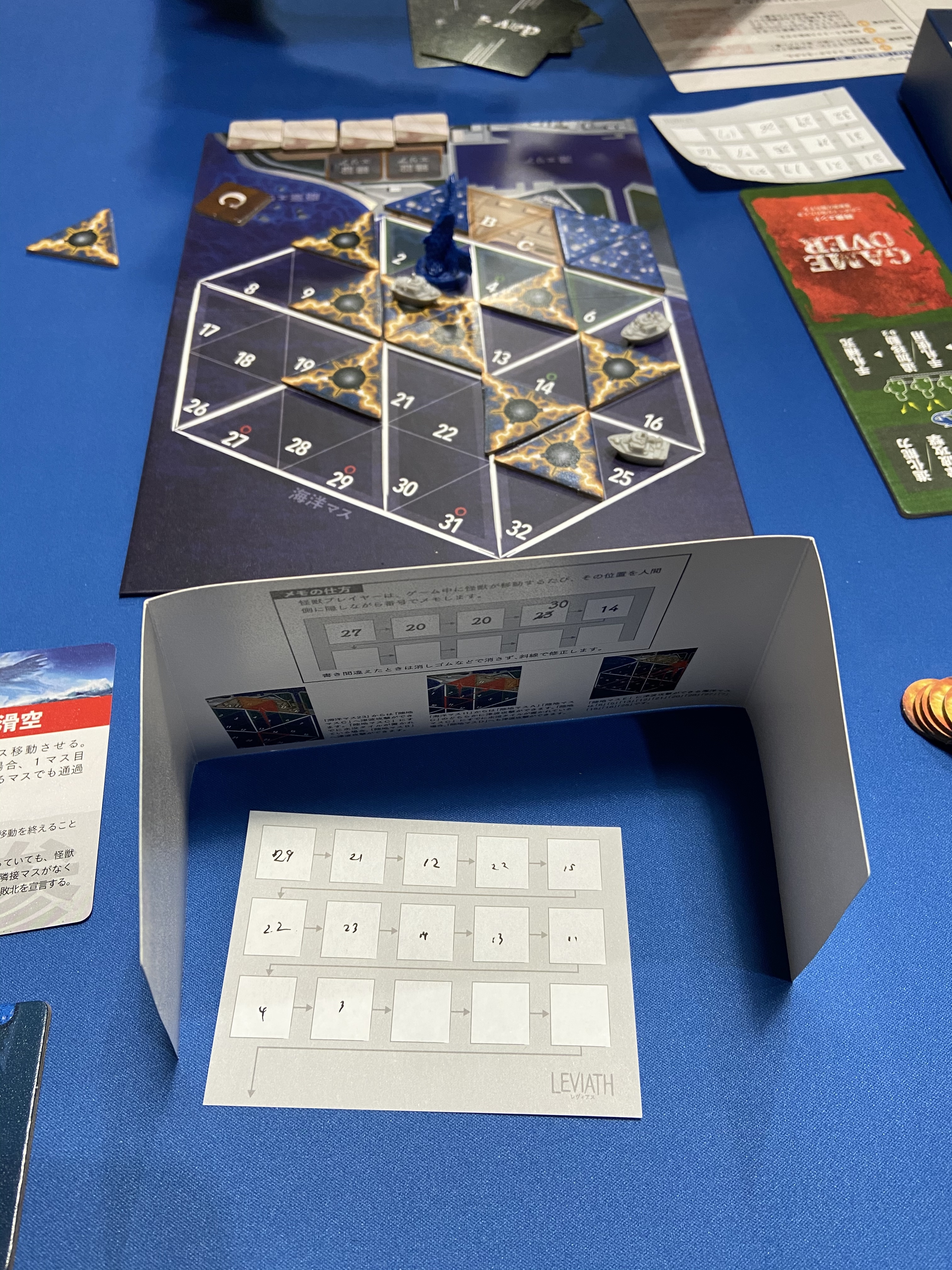 2人プレイだと怪獣の位置を探る「ソナー」が少なく、どうしても位置を絞り込めなくて時間切れで負け...という展開が多かった。怪獣側も積極的に港を攻撃しなくても、逃げ回ればいずれ勝てることが多い。港を攻撃すると、大まかな位置がバレるので港攻撃はしない方が良いまでありそう。積極的なゲーム展開にならない傾向がありそうなので、遊ぶならMAX人数で遊びたい!