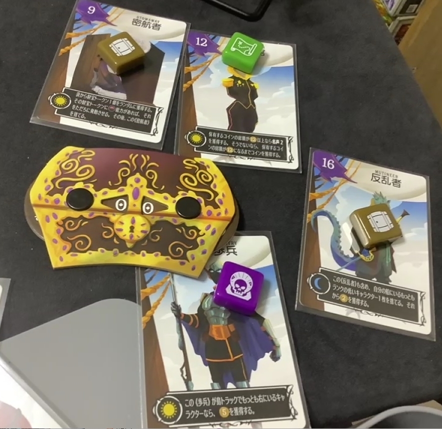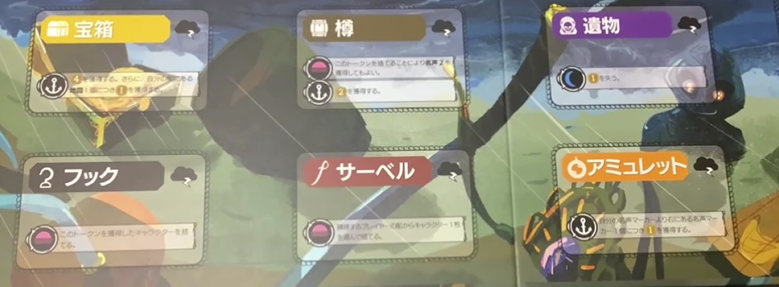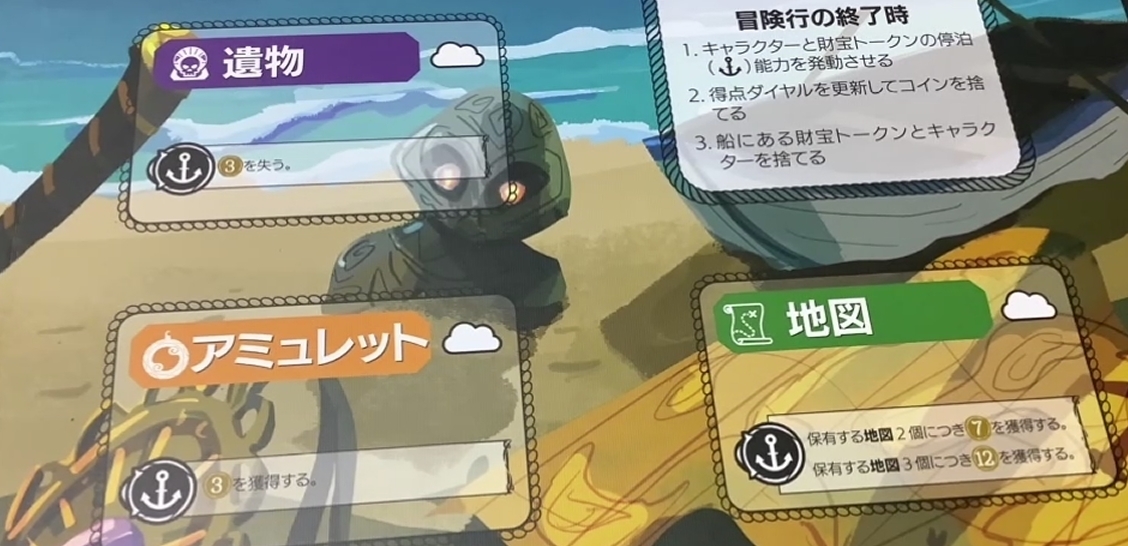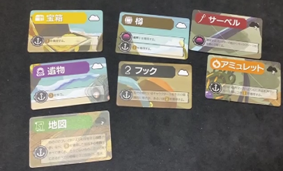 そして港に返ってくると各財宝の効果が発動します。乗組員カードの中にもこの能力を持っているカードがあります。