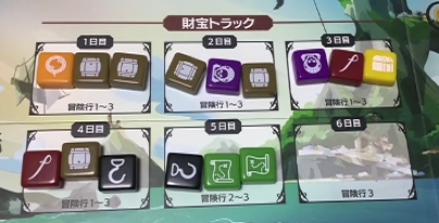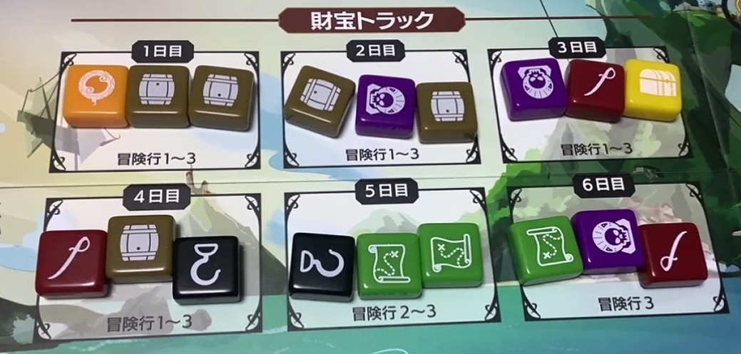このゲームは財宝トラックに置かれている財宝タイルが置かれていますが、1ラウンドは4日
