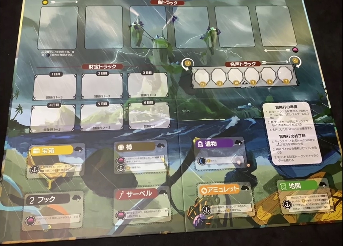 プレイヤーは空賊団を率いて4日、5日、6日の3回の航海を経てお宝を手に入れ港に寄港して金貨に変えて宝箱に収めていく。