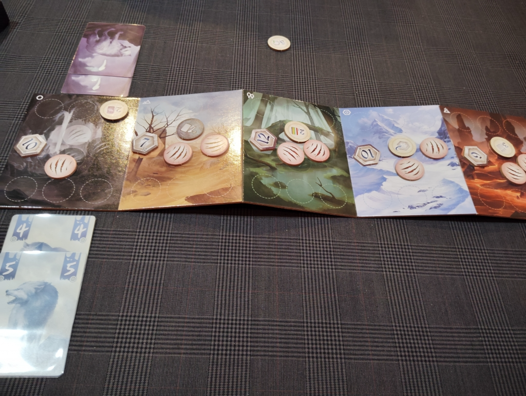 トリテやけど、バトルラインみたいに5カ所のエリアでの争いがあり、ゲーム終了に各エリアで数字合計が高いプレイヤーがエリアポイントを獲得します。