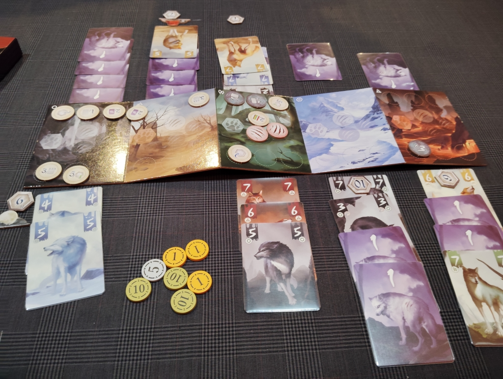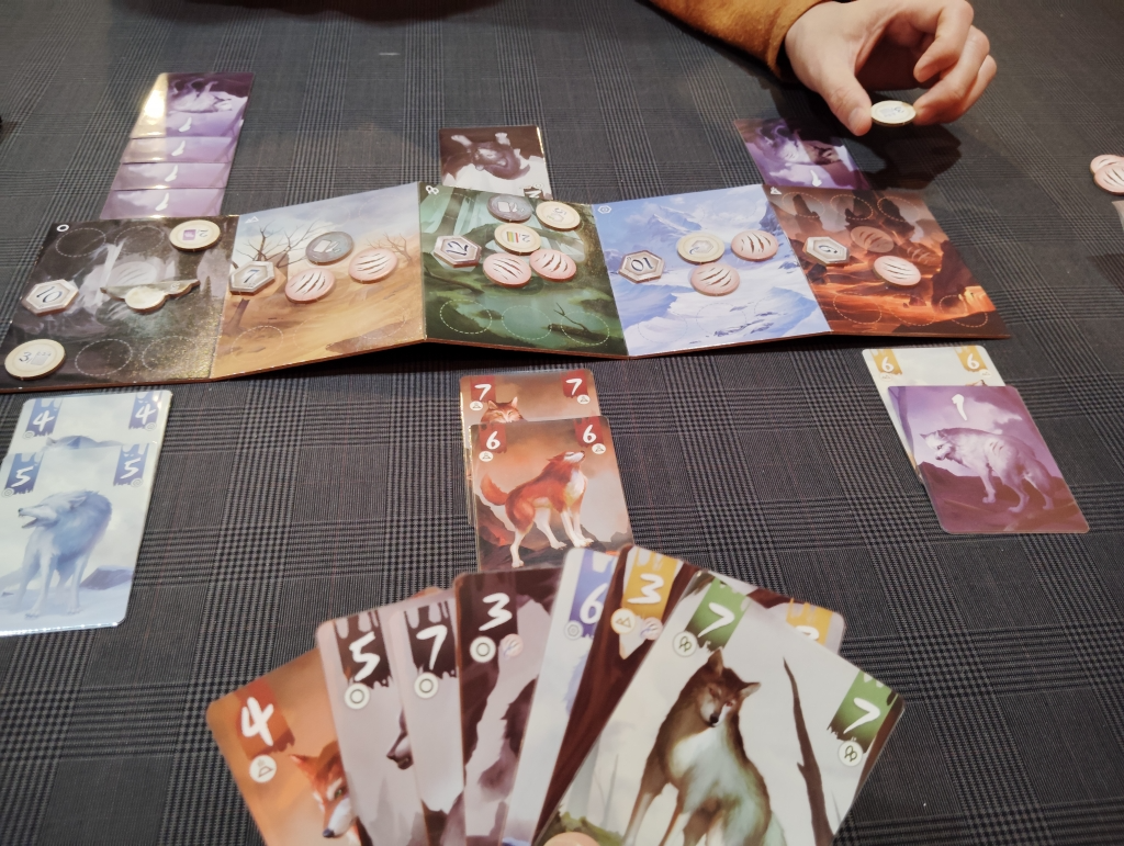 各エリアには、2人合わせて6枚のカードしか配置できないので先にプレイしておくことでエリアの獲得がしやすくなりますが、あえてトリックを獲得しないでおくほうが得点を多く獲得できるチップもあったりするので戦略的敗北も必要です。