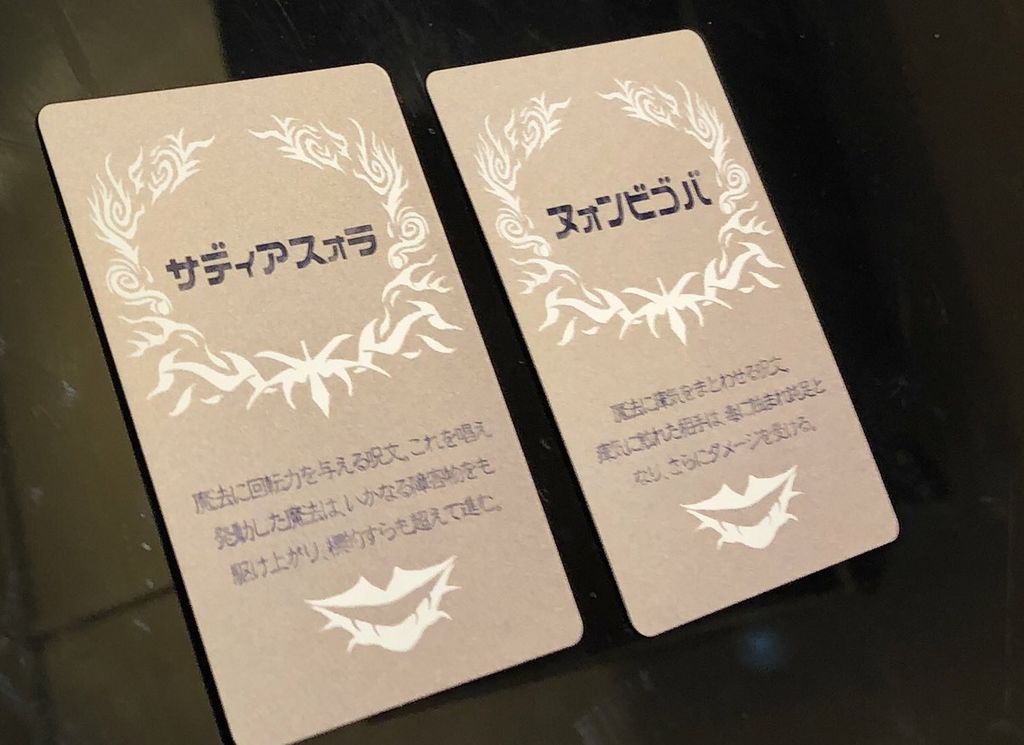 読めたカードは自分の場に残るので、どんどん呪文は長くなります!噛んだり読みきれなかったらアウトで、最後まで残った一人が得点します。