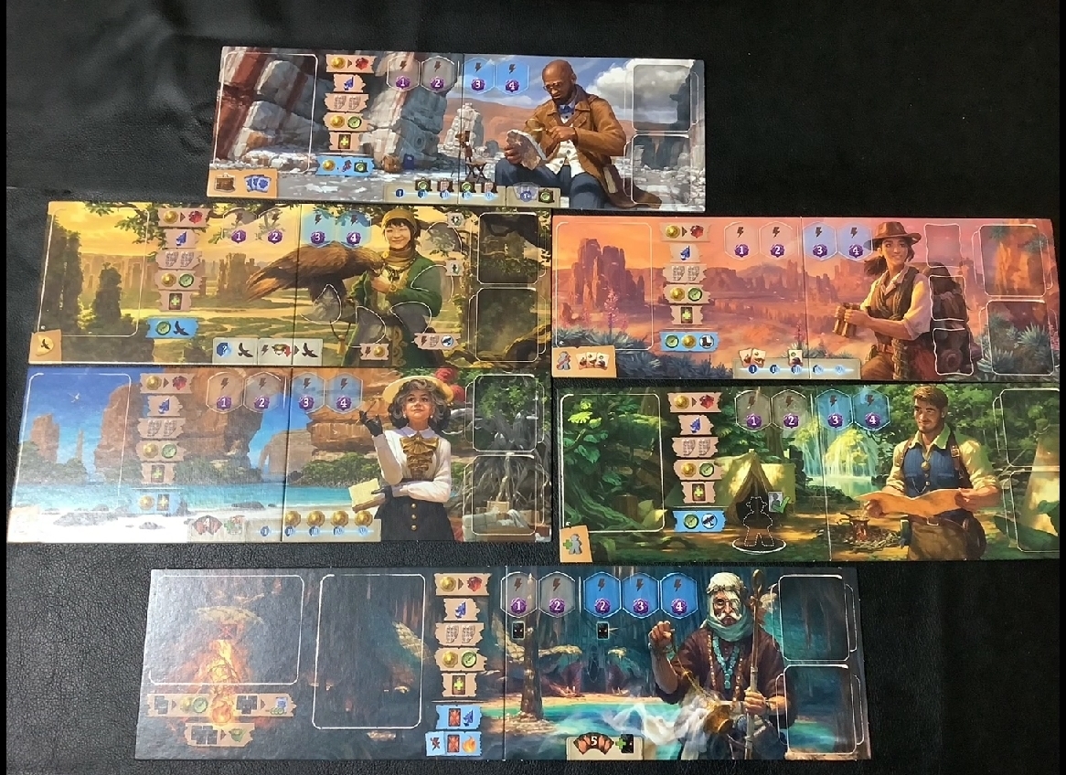 教授は最初から遺物をカバンに抱えており、それを買うための方位磁石や起動する石板がかばんに溜まっては行きます。ただ、このゲーム方位磁石で探索しないと勝利点が取りずらいゲームです。もうちょっと方位磁石が取りやすかったらなぁとは思います。