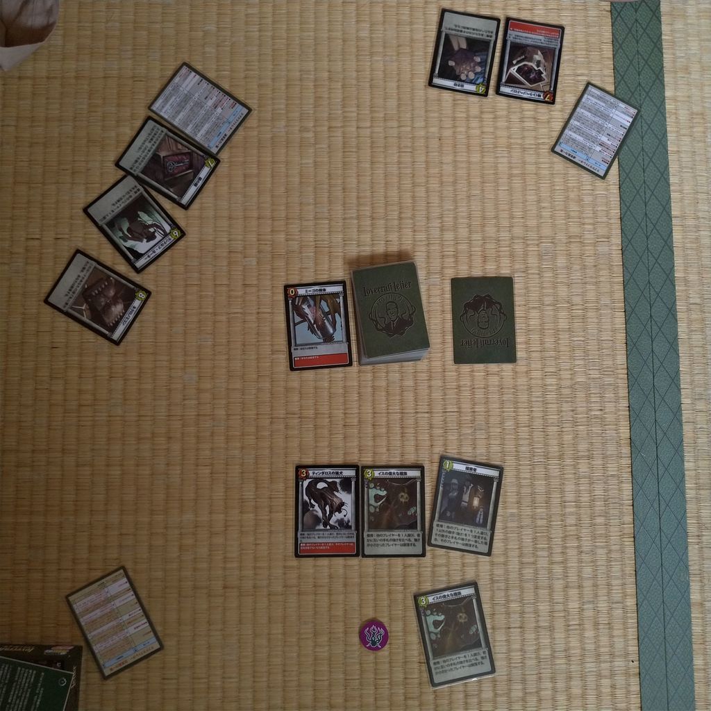 ラブレターのシステムに、クトゥルフ神話の要素(狂気)を付け加えたゲームです。