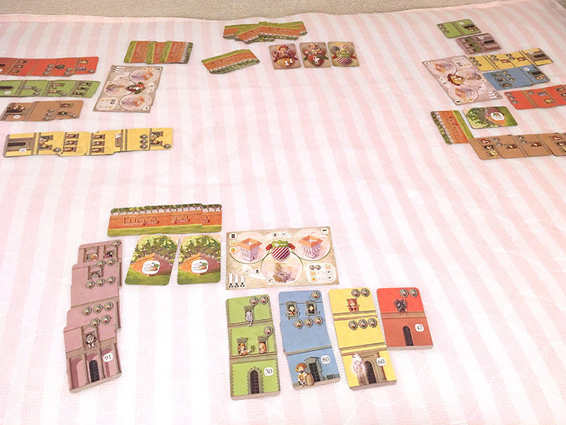 楯は建設エリアにある時に手番順として使われるのと、最後の得点計算で、市壁の数×2つ、建設エリアに必要となる。