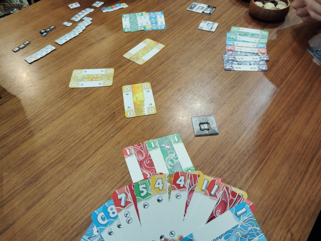入札は手札を何枚公開するかとなり、公開したカードはそのまま公開したまま、ラウンドを遊ぶことになります。