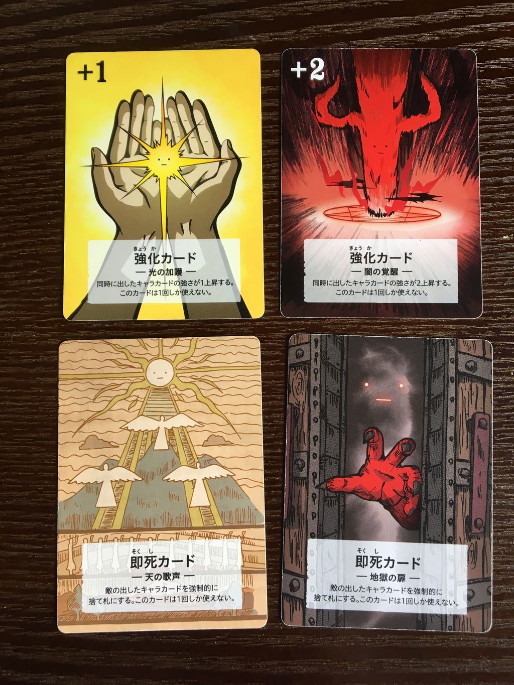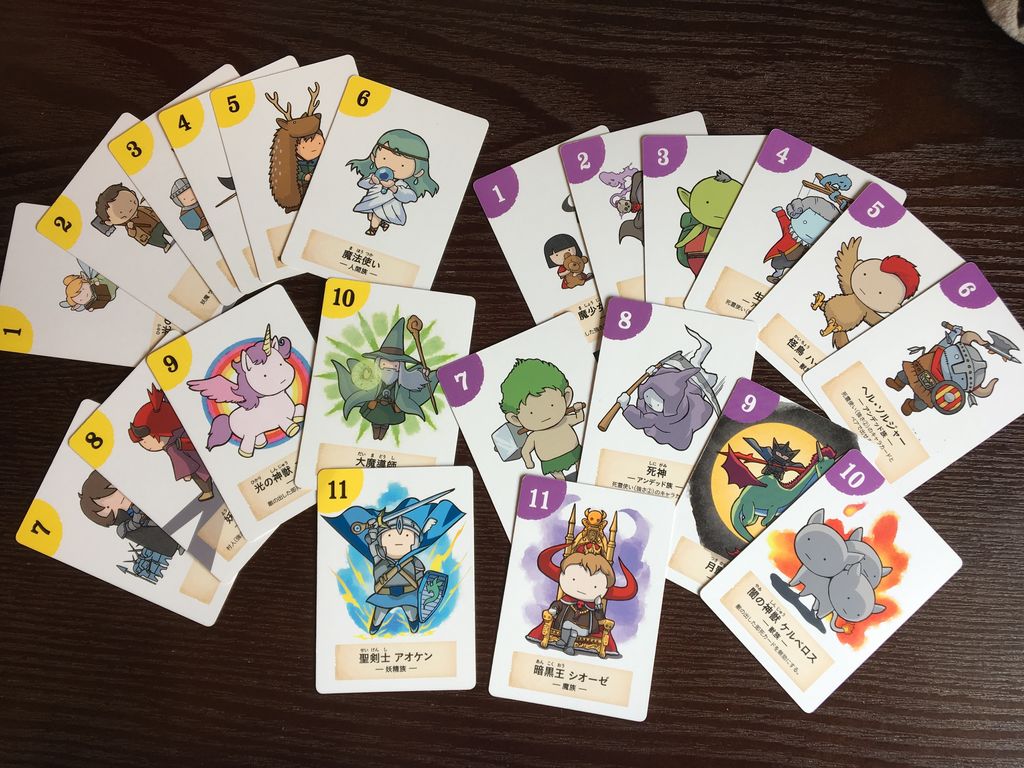 これらをシャッフルしてプレイヤーにランダムに配ります。あとはお互いの手札の読み合いとなります。